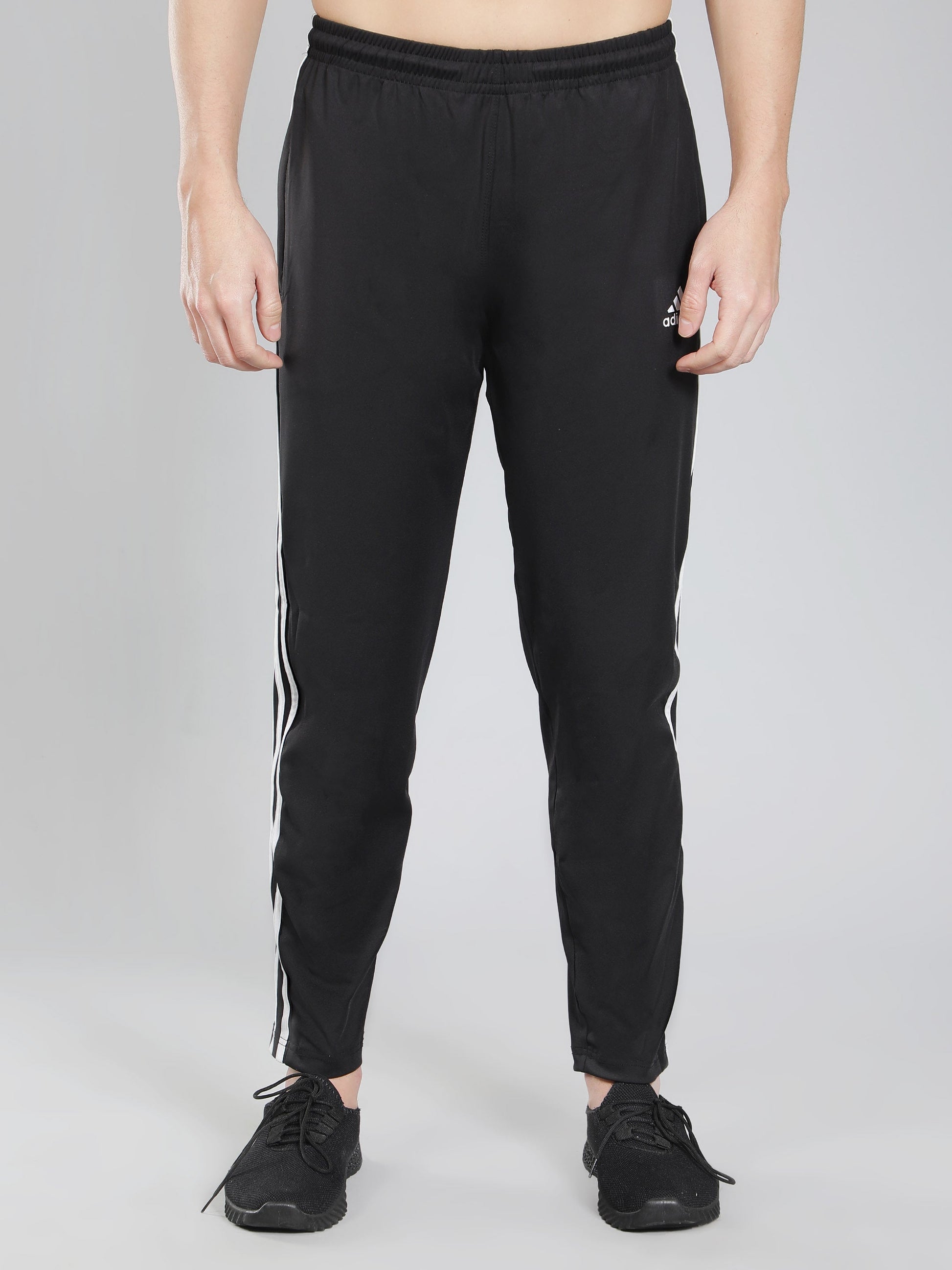Adidas Solid Casual Men Black & White Track Pants