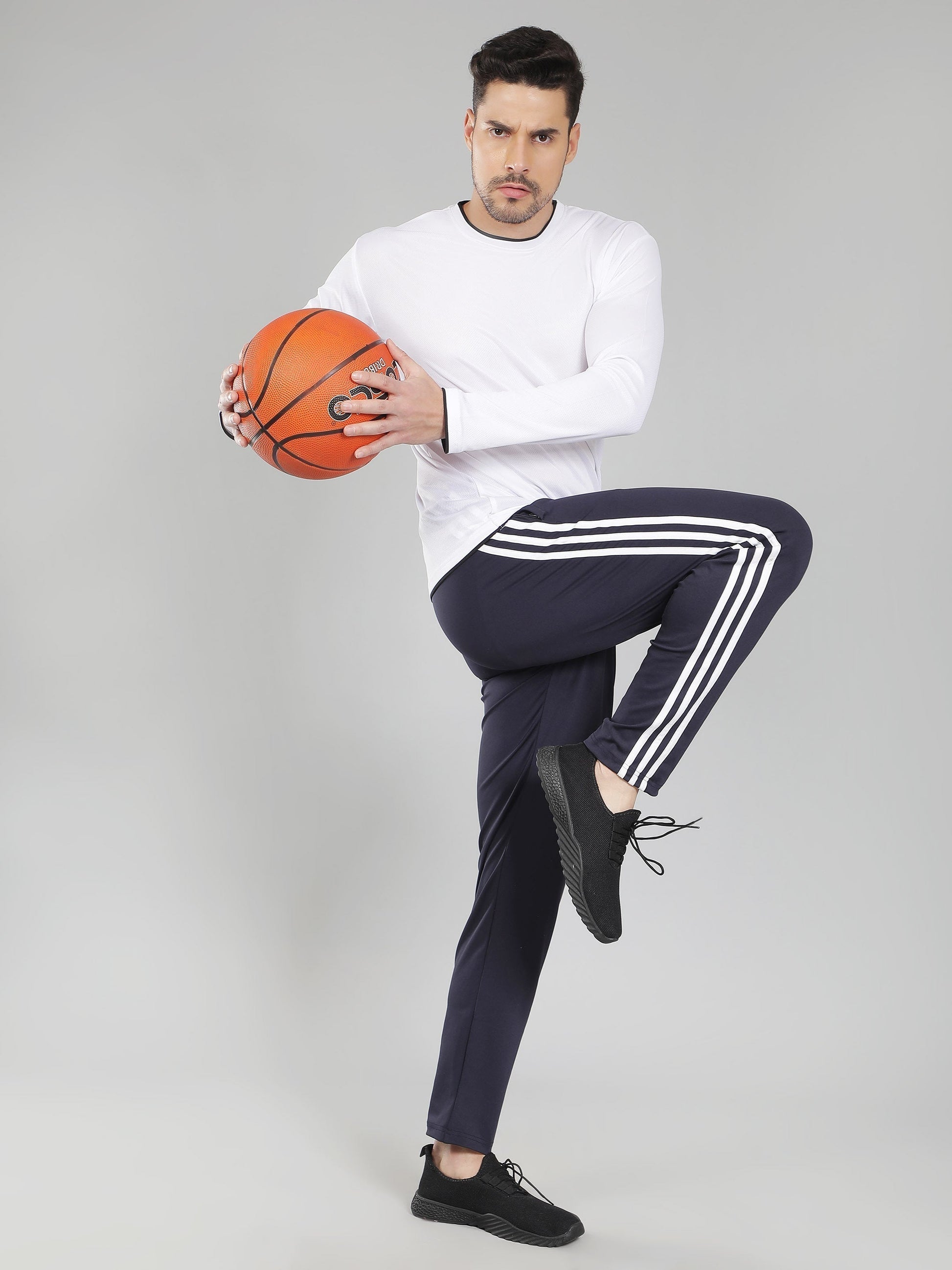 Solid & Casual Men Navy Blue & White Stripes Track Pants